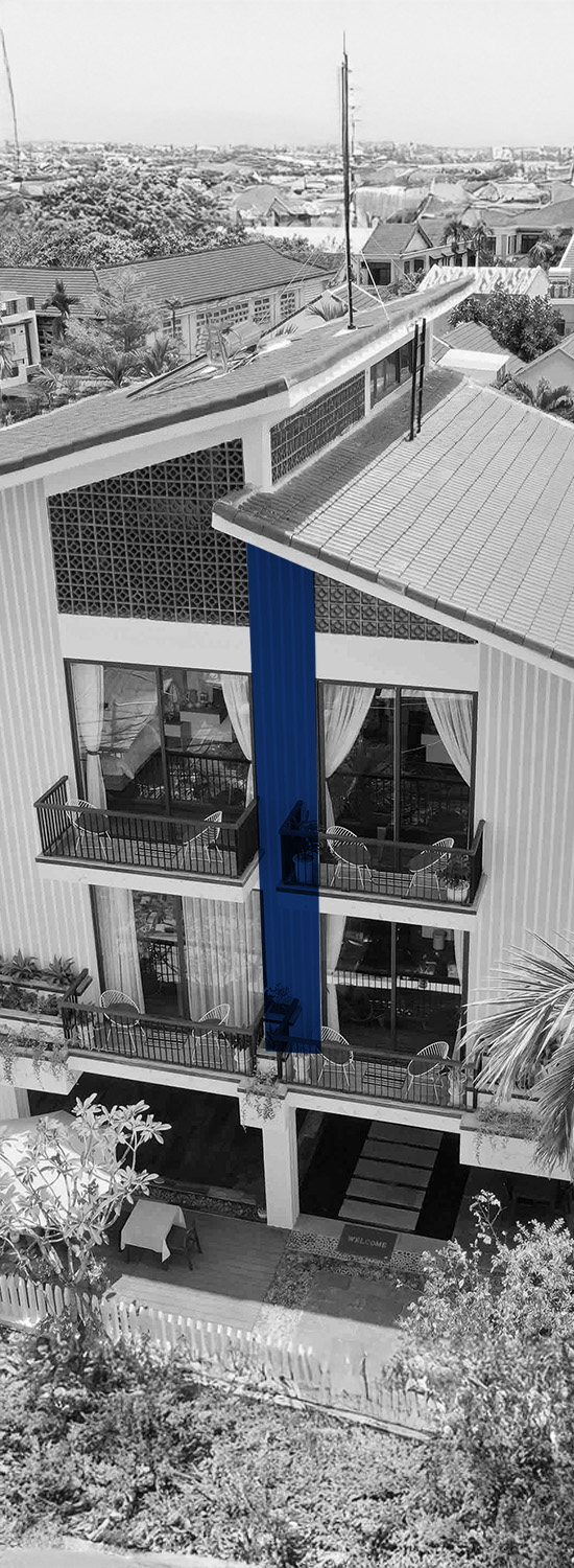 Grace River Villa được kiến tạo như một dòng sông thu nhỏ giữa lòng khuôn viên, thể hiện tình cảm sâu đậm của gia chủ với quê hương bên dòng Thu Bồn. Không gian tầng 1 là nơi của nước, cây xanh và sinh hoạt cộng đồng, trong khi các tầng trên mở ra thiên nhiên với những góc nhìn yên bình. Vùng lõi kiến trúc được thiết kế đậm chất Hội An, sử dụng vật liệu thô mộc như gỗ, thép và gạch, mang đến cảm giác vừa gần gũi vừa tinh tế.